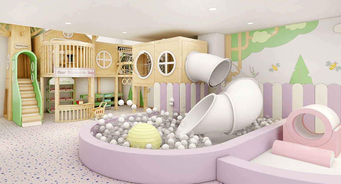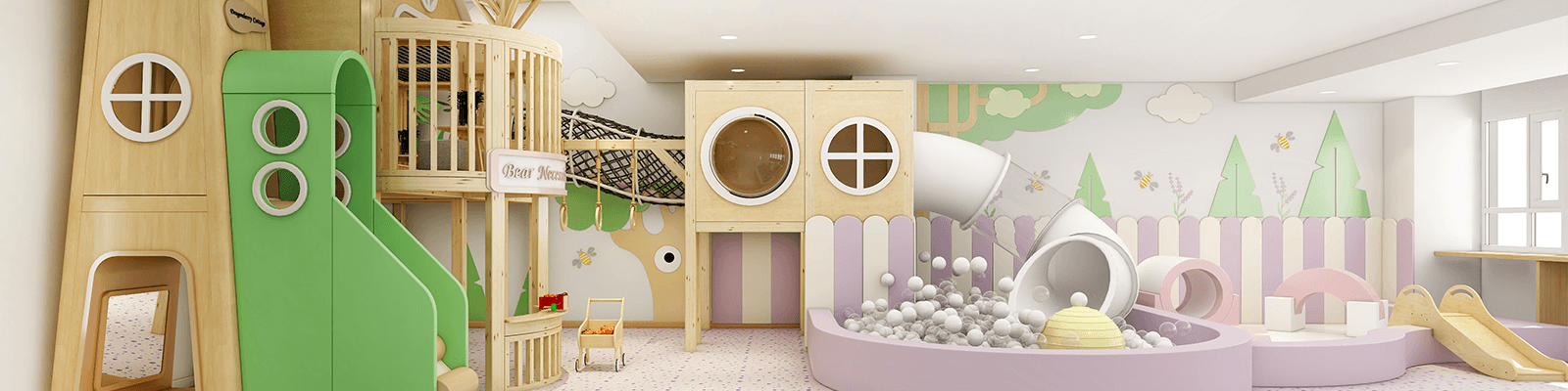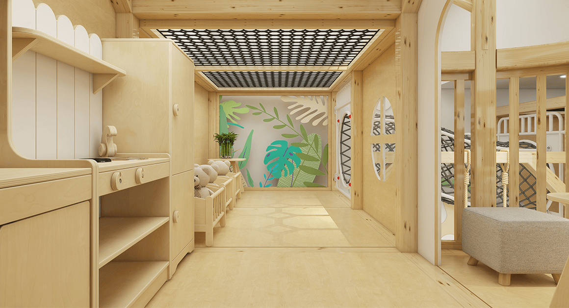 Centered on the principles of “free exploration, sensory stimulation, and social collaboration,” the design provides an environment where families can escape the stress of city life and enjoy relaxed and joyful family time with our indoor playground equipment. The project inspires children's desire for independent exploration and cultivates cognitive and social skills through role-playing. The color palette, primarily natural wood tones and purple, creates a comfortable and welcoming paradise.