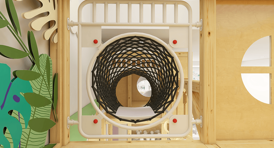 Through climbing, nets, tunnels, slides, and other physical development activities, children's flexibility and coordination are enhanced.