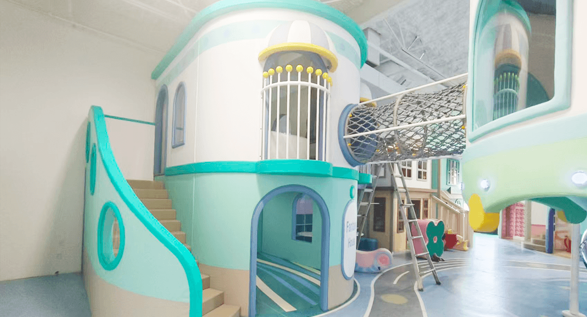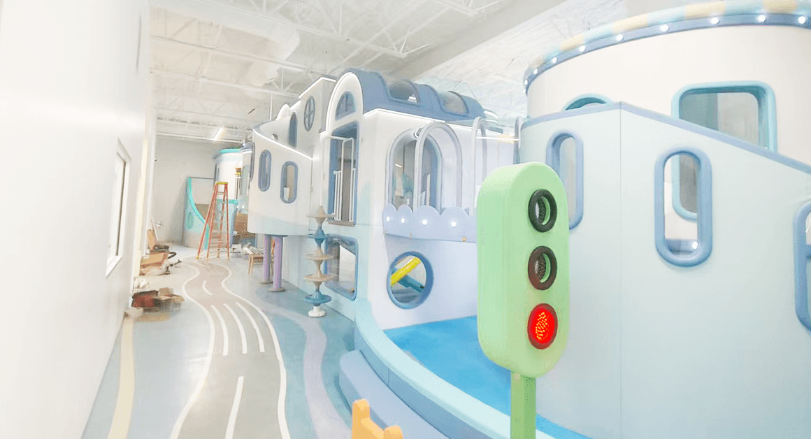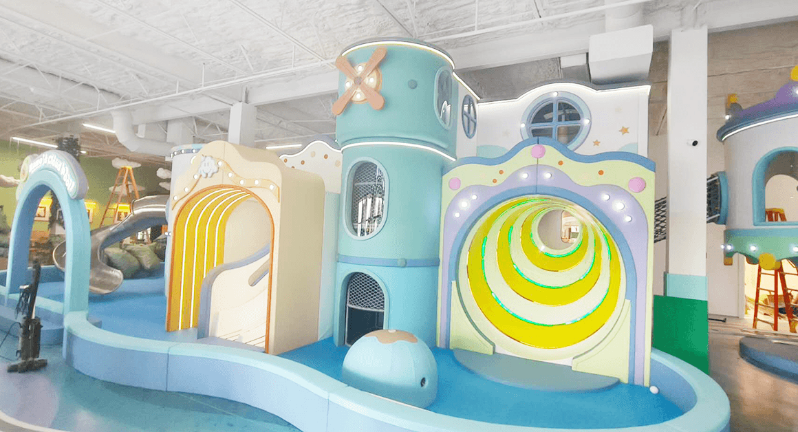Design: Accessed from the Toddler Area’s rocket, this zone features balance beams, rockers, jumping mats, and educational wall panels.