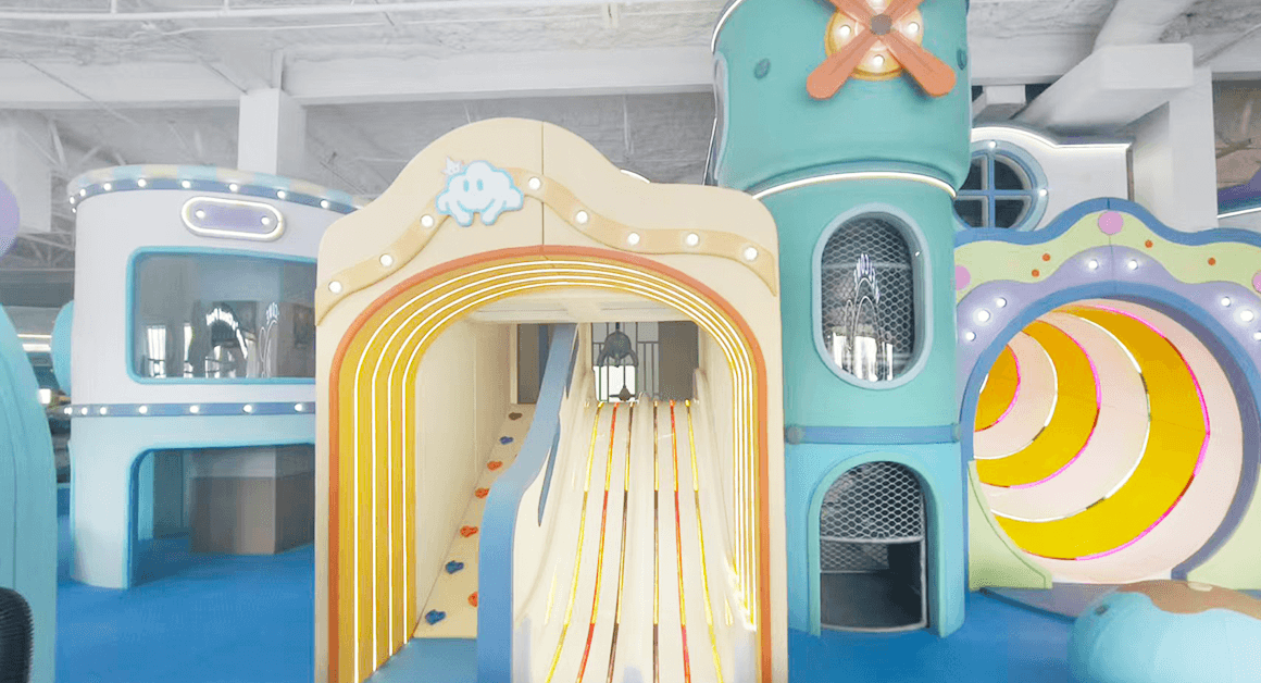Designed and delivered by Mooton, this project is an immersive dream playground for children aged 0 – 10, covering a total area of 6,500 sq ft. The space features a creative three-level structure connected by winding crawl nets and crystal-clear acrylic aerial pathways, seamlessly linking a two-story role-playing castle with a cognitive play zone. Key areas include: Interstellar Reception, Toddler Soft Play Area, Sensory Integration Zone, Cloud Café, Sky Play Zone, Role-Playing Area, Intellectual Zone, and Nebula Party Room.