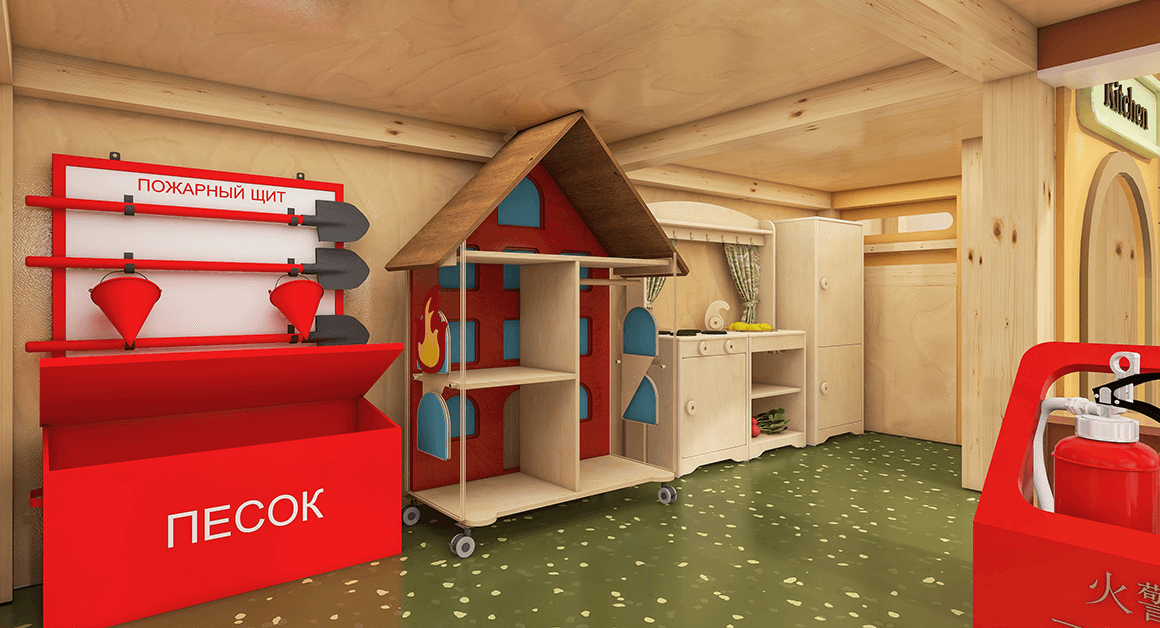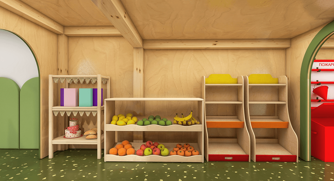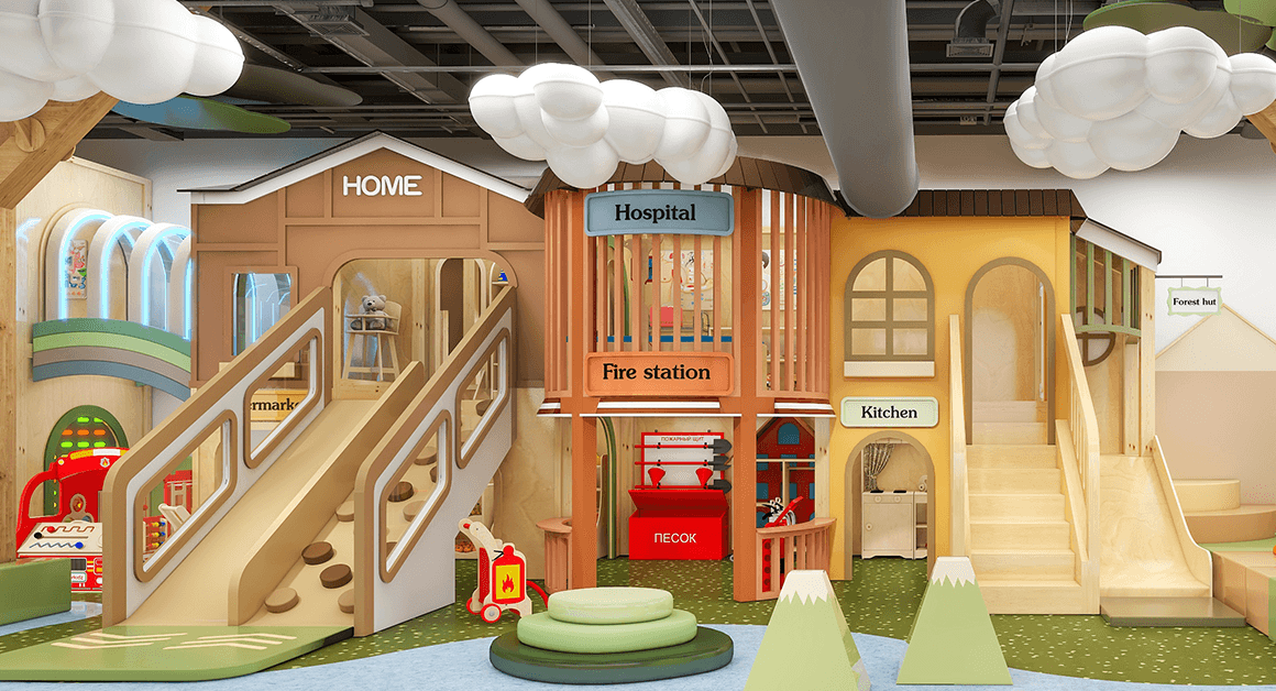 Role-Play Zone: Sunrise Village in a Two-Level Wooden Structure