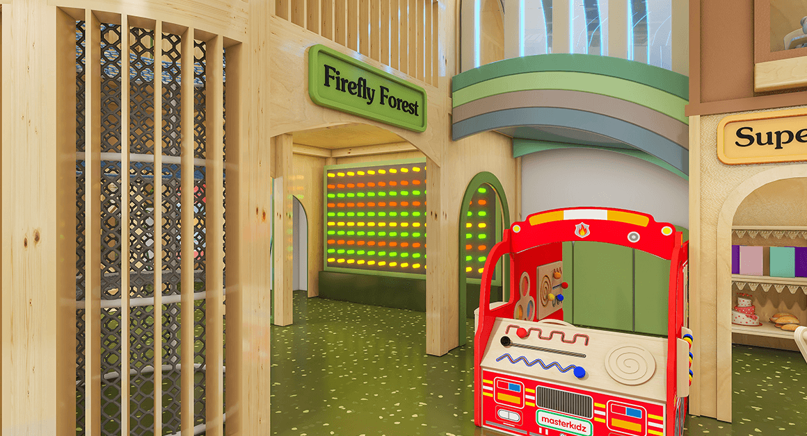 Mooton designed and delivered a fully customized, immersive growth playground for children aged 0–10, themed around “Sunrise” and nature. Spanning 1,100 sqft, the space seamlessly blends functionality with storytelling. It features dedicated zones including an entry area, guardian café counter, interactive wall play section, soft sensory zone for toddlers, climbing area, and a central two-level wooden play structure.